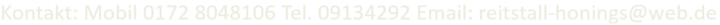 Honings, ein Ortsteil von Hetzles im Landkreis Forchheim liegt am Tor zur Fränkischen Schweiz unterhalb des 549m hohen Hetzleser Berges. Diese reizvolle Lage ist ein idealer Standort zum Ausreiten in die Natur. Die Reitanlage bietet neben einer Reithalle, einem Longierzirkel noch zwei Dressurplätze und einen Springplatz.